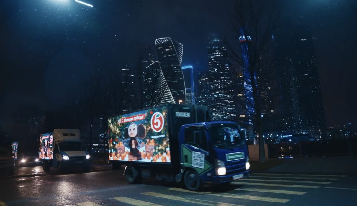 Ключевым форматом проекта стали мобильные фургоны с цифровыми экранами, курсировавшие по центральным улицам столицы. Вместо традиционных рекламных сообщений на экранах появился образ Чебурашки с мандаринами. Понятный и знакомый персонаж не требовал пояснений и сразу работал на эмоциональное восприятие, привлекая внимание в потоке городского движения.