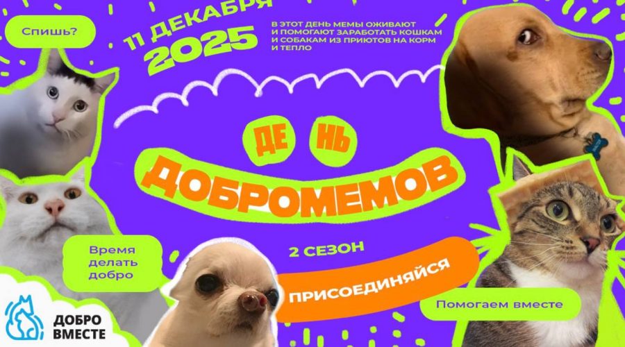 Поводом для акции послужил тот факт, что в последние годы российские приюты сталкиваются с рекордной нагрузкой: число бездомных животных выросло, ресурсы многих организаций на пределе, а с наступлением холодов ситуация становится критической. Мемы могут не только быть смешными, но и приносить пользу — так год назад благотворительный фонд помощи бездомным животным «Добро вместе» при поддержке […]